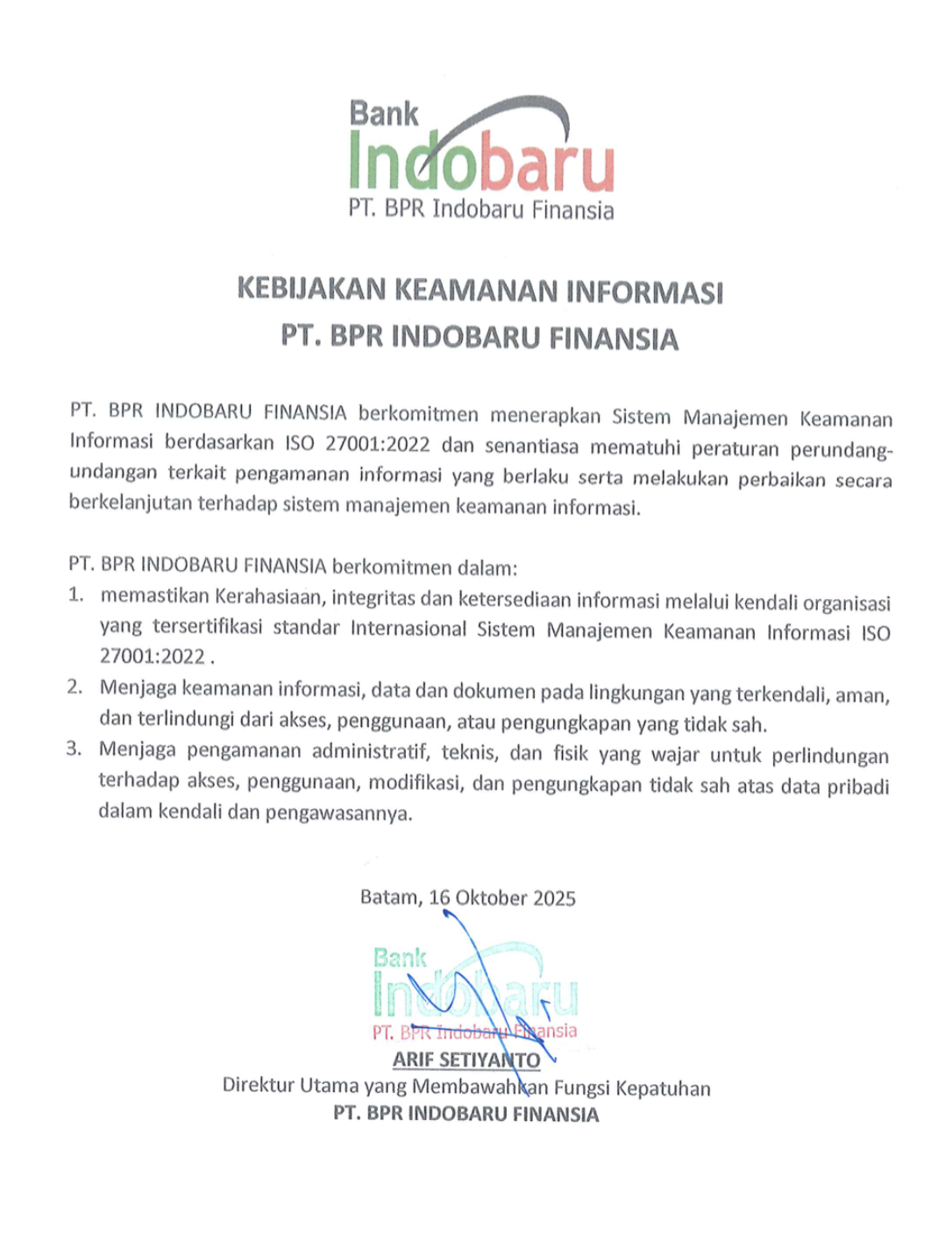 BPR Indobaru Finansia hadir sebagai solusi, menjawab kebutuhan masyarakat Batam akan layanan perbankan yang menghadirkan beragam produk pinjaman dan produk-produk simpanan dengan proses yang cepat dan suku bunga yang lebih bersaing.