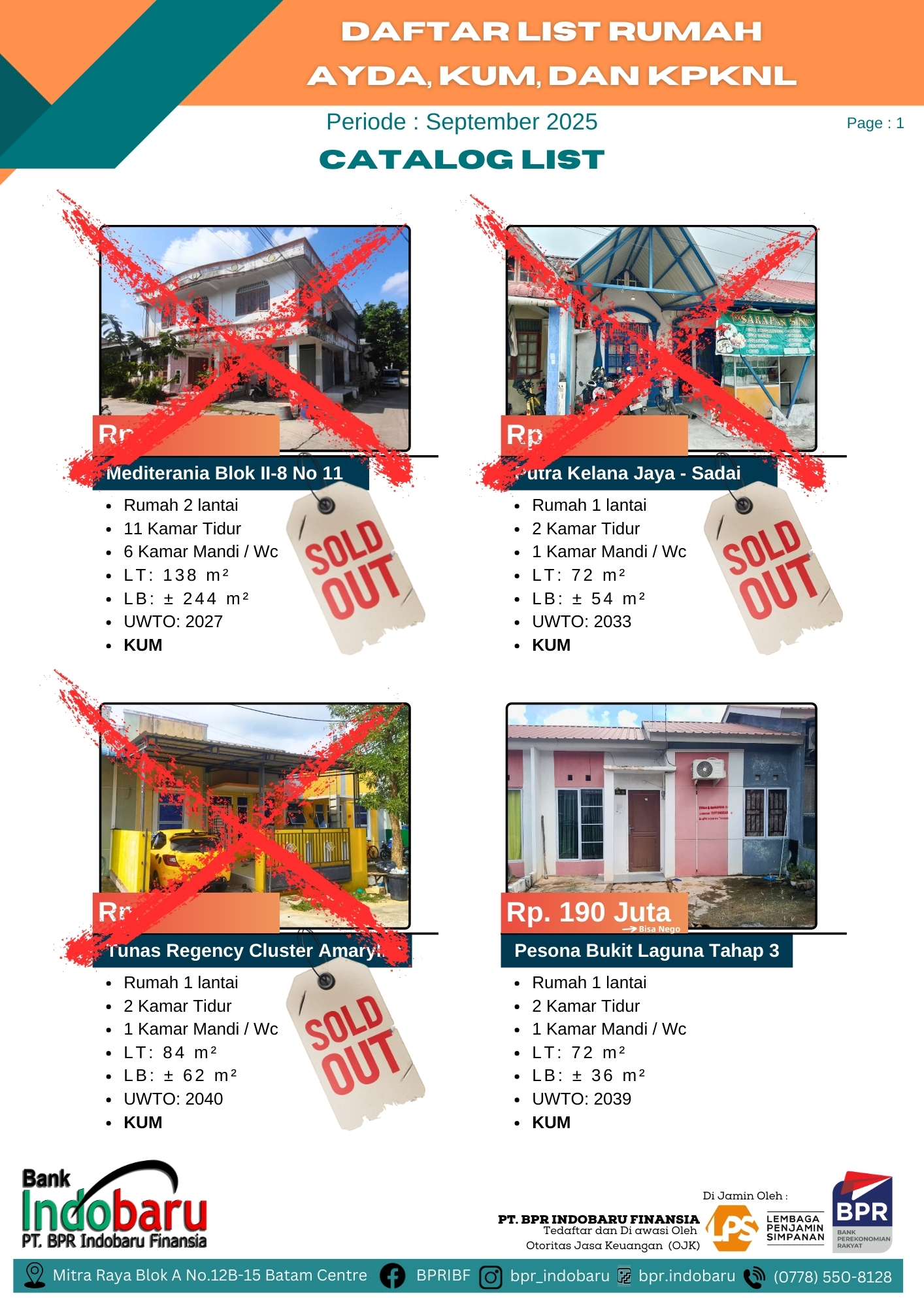 ((Warning)) Hati-Hati terhadap penipuan yang mengatasnamakan PT. BPR INDOBARU FINANSIA untuk melakukan pembayaran ke rekening yang bukan milik PT. BPR INDOBARU FINANSIA. ((Warning)) Rekening PT. BPR INDOBARU FINANSIA: BCA : 061-171-9255 Mandiri : 109-001-2037-206